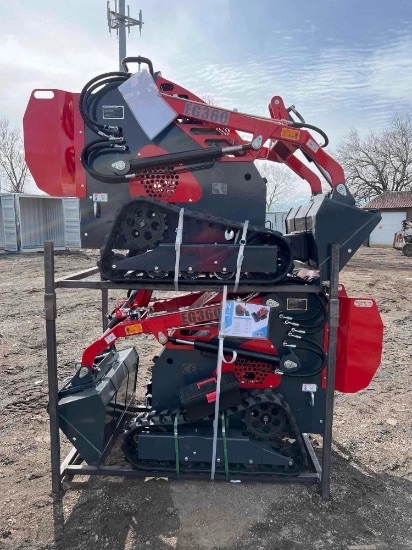 HEAVY EQUIPMENT: , New Traner Co TR45 Gas Powered 4x4 Articulating Loader , Ford 750 backhoe , Ford 750 Backhoe (Parts Machine) , Bell & Howell 3 Ton Swinging Jib Boom w/ 3 Ton Yale Hoist/Trolley , Pettibone Co All Terrain 4x4 Crane , Miva VA13 Mini Excavator , New AGT Industrial Co Mini Excavator Model H12 , New AGT QH12R Mini Gas Excavator , New MIVA Co Gas Powered Mini Excavator Model VA15 , New Miva VA13 Mini Ex , New MIVE Co Gas Powered Mini Excavator (Full Cab) Model VA13C , 2000 Yale Model ERC 50 Forklift , 2012 Hyster E50-XN33 Triple Mast Electric Forklift , 2017 Hyster S50FT Forklift , Bobcat 943 Skidloader , Hyster 5400lb LP Forklift , New MIVA Co SB05 Mini Ex Breaker Unit , Allis Chalmers Wheel Loader Model 840 , Cat 931B Track Loader , Ford A62 Diesel Loader , Kawasaki 85ZII Wheel Loader , Bobcat S130 Skidloader , New Holland LS160 Skidloader , New LandHero Stand On Mini Skidloader Model LDH-HY380 , New AGT Industrial LRT23 Mini Tracked Skidloader , NEW EGN Stand-on Skid Loader Model: EG360 , SkyTrak Telehandler Model 8038, CRD STEEL 3 DRUM ROLLER