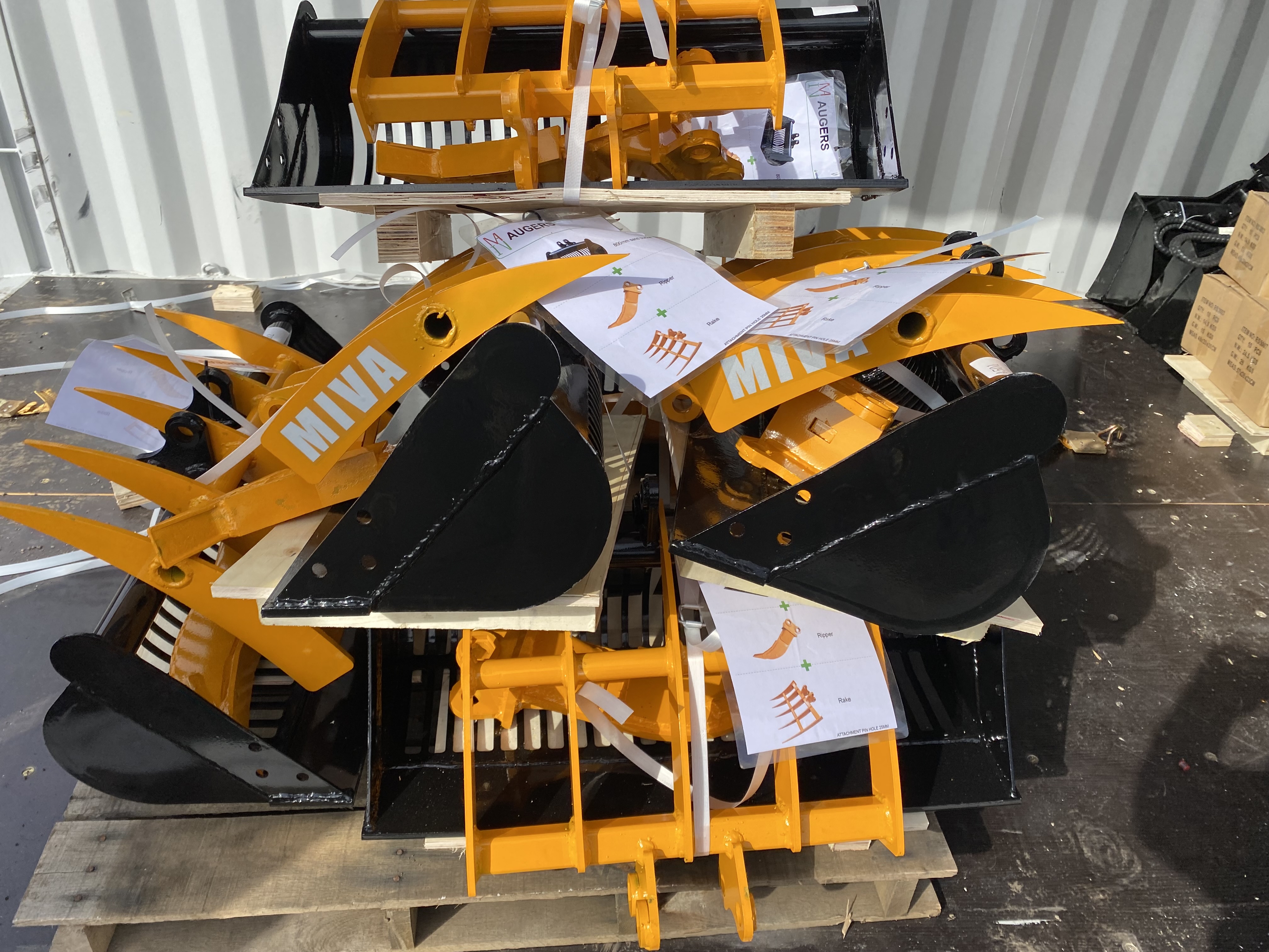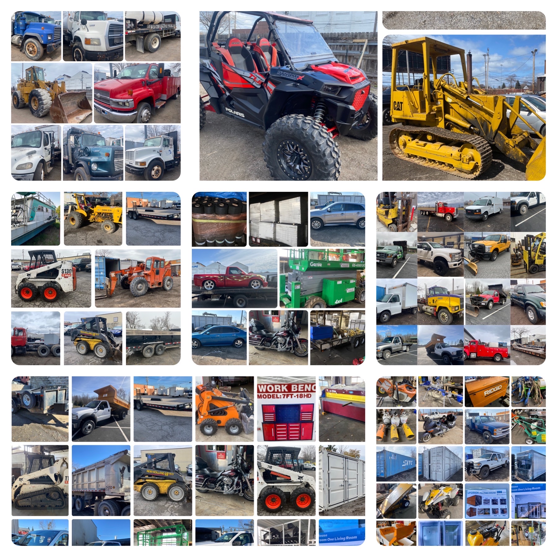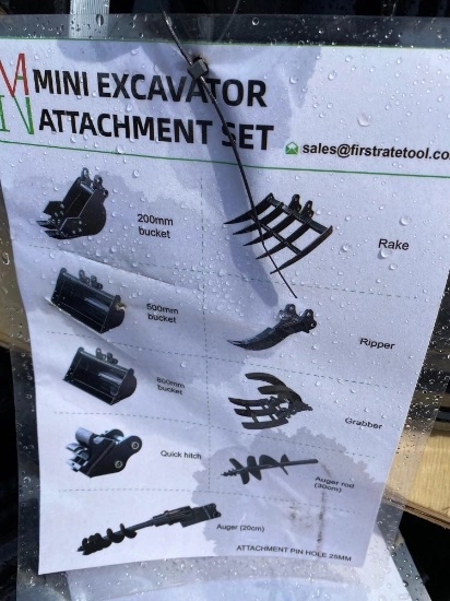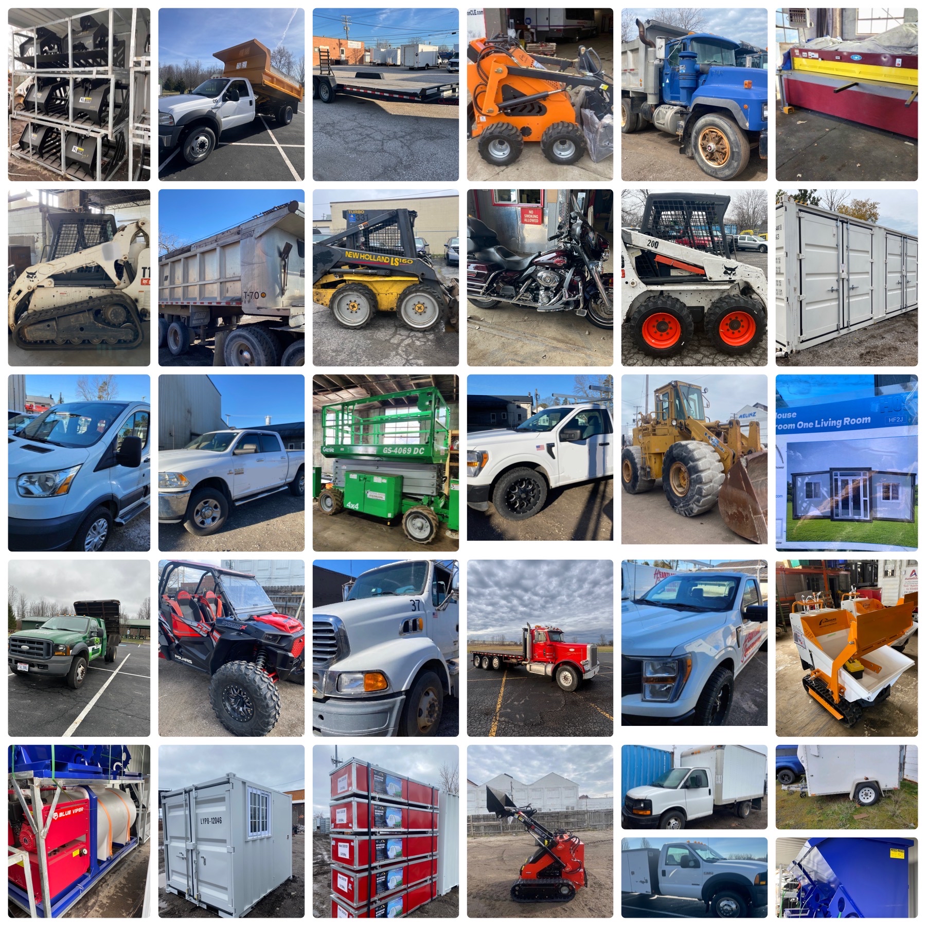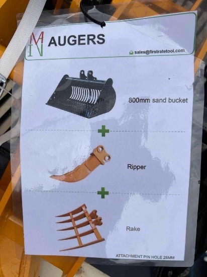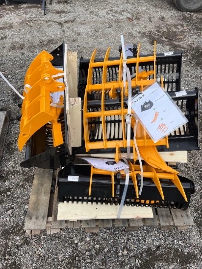 TOOLS and ATTACHMENTS: New Chery Rock Bucket 66 Inch , Finish Staples , New 110v Concrete Vibrator 38mm , New Extra HD 800 amp/1 Gauge 25ft Jumper Cables , New Huskie Co B65G 110v Jack Hammer , Taper Shear 8" , (2) Manual Chain Hoists , 14" Diamond Premium Saw Blade , J & S Radius Dresser , Mitutoyo Caliper in Vinyl Case , Mitutoyo Caliper in Wooden Case , Mitutoyo Depth Micrometers in Case , Mitutoyo Dial Height Gage , Mitutoyo Height Master in Wooden Case , Mitutoyo Mechanical Inside Micrometers in Case , Mitutoyo Micrometer in Wooden Case , Mitutoyo Micrometers in Wooden Case , Mitutoyo Vernier Calipers in Wooden Case , New Chery Industrial Co 20ft x 30ft x 12ft Storage Shelter , Pallet of (28) Plastic Bins w/ Removable Dividers , Spool of Flexible Corrugated Pipe Roll , Mini Ex Attachment Set , Miva Mini Ex Hydraulic Auger , New GIYI Co HD Large Ripper Tooth (Fits CAT 320 Excavator) , New MIVA Co 14in Ripper Tooth Attachment , New MIVA Co 15in Mini Ex Grapple Attachment , New MIVA Co 19in Rake Attachment , New MIVA Co Mini Ex Quick-Hitch , New MIVA Co Mini Ex Thumb Attachment , New MIVA Co Mini Excavator Attachment Set , CP Quick Tach for Cat 430 , LandHonor Skid Steer Double Discharge Concrete Mixer , New GIYI Co Extreme Mulcher Hydraulic Skidloader Attachment , Wolverine Articulating Skidloader Job Sweeper Model FBS-11-36D , Wolverine Co 44in Hydraulic Mini Log Grapple (Mini Dingo Type) Skidloader Attachment Model , Wolverine Co 48in Mini Dingo Type Hydraulic Closed Box Job Sweeper Model MBS-11-48W , Wolverine Co 48in Mini Dingo Type Hydraulic Open Box Job Sweeper Model MBS-11-48W , Wolverine Co 72in Hydraulic Skidloader Disc Mulcher , Wolverine Co 72in Hydraulic SkIdloader Log Grapple Skidloader Attachment , Wolverine Co 72in Hydraulic Skidloader Sickle Bar Mower Attachment Model SBM-12-72W , Wolverine Co 72in Hydraulic Skidloader Sifting Bucket Model SB-12-72W , Wolverine Co 78in Hydraulic Skidloader Finish Mower Attachment Model TBM-12-78W , Wolverine Co 84in Hydraulic Skidloader Snow Blade Attachment Model SWDB-11-84W , Wolverine Co Hydraulic Rotary Tiller Model TL-12-72w , Wolverine Co Hydraulic Skid Loader Box Broom attachment. Model BBS-11-72W , Wolverine Co Hydraulic Skid Steer Angle Broom model PAB-12-72W , Wolverine Co Hydraulic Skid Steer Hammer Breaker Model CB-11-750F , Wolverine Co Hydraulic Skidloader 84in Solid Bottom Rock Rake Attachment Model RCR-12-84W , Wolverine Co Hydraulic Skidloader Fork Attachment Model PFA-11-3300G , Wolverine Co. Hydraulic Skid Loader Auger Set , Wolverine Co. Hydraulic Skid Steer Brush Cutter Model BC-13-72W , Wolverine Co. Hydraulic Skid Steer Grapple Bucket , Wolverine Co. Hydraulic SkIdloader Vibratory Roller , Wolverine co. Hydraulic Stump Bucket Model SGP-13-46W , Wolverine Co. Hydraulic Stump Grinder Model SG-13-08D , Wolverine Co. Skid Steer Land Leveler Model LL-12-78W , Wolverine Co. Trencher Model TCR-12-48H , Wolverine Hydraulic Log Grapple Attachment SkIdloader Model FHP-11-3500G , Wolverine Hydraulic SkIdloader 72in Box Sweeper Attachment W/ Dust Eliminator Box Model , Wolverine Skid Steer Hydraulic Snow Plow , Miva Mini Ex Auger Set , Mvia Mini Ex Auger Set , Vevor Band Saw , Craftool Co Dual Polish/Grinder Unit , Craftsman 15in Drill Press , Ruemelin Mfg Co., 20x30 in Sand Blast Unit Model 27704 , Miva Mini Excavator tilting Bucket , Wolverine 66in Solid Bottom Standard Skidloader Bucket , Wolverine 72in Solid Bottom Standard Skidloader Bucket , Wolverine 78in Solid Bottom Standard Skidloader Bucket , Wolverine 84in Solid Bottom Standard Skidloader Bucket , Wolverine Co Hydraulic 48in Mini 4/1 Bucket (Mini Dingo Type) Model MCB-11-48W , Compackager Corp Model PT-12-AK Compactor Unit , Clipper Concrete Saw , (10) Concrete Retaining Blocks , Industrial Loan Je Drill Press , Walker Turner Industrial Drill Press , AGT Skid Steer Fork Set , Husky 111-Piece Mechanics Tool Set , New Deko tool Set , 8 Ton Combo Pindle Hitch , Wolverine Co. 3-point hitch model PHA-11-02C , 6Ton Chain Hoist , Union Co Chain Hoist w/ Trolley , New SDLOOL Co SL80LC Jumping Jack Tamper , Amada Vella II 30ton Turret Press Punch , Orsogril Industrial Radial Metal Miter , Osogril Industrial Metal Cutter , Robotic Welding Arm with Control Panel , Vintgage Oster Manufacturing Co. Industrial Threading Machine , Whitman 847 Plasma Cutter with MANY accessories , Vintage Pedestal Leg, Steel Sawhorse and Tow Bar , Husqvarna K1260 Gas Cutoff Saw , (2) Dewalt 20V Cordless Oscillating Multi Tool , (2) Dewalt 20v reciprocating saw , (3) 20v Cordless Dewalt Impact Drivers , (4) 20v Cordless Dewalt Drill/Drivers. , (4) Dewalt 1/4" 20v Cordless Impact Drivers , Dewalt 20v Circular Saw , Dewalt Battery+Charger , Dewalt Cordless Framing Nailer , Dewalt Recip. Saw , Dewalt Speed Jig Saw , JCB Battery-Powered Tool Set , 12V Diesel Fuel Pump , New 12V Diesel Fuel Pump W/ High Accuracy Flow Meter , New 60 Gal. Poly Diesel Tank w/ 12V pump , New Metered 50' Diesel Fuel Reel W/ HD 12v Pump , New Mustang MP 4800 2" Submersible Pumps , New Wolverine Mini Ex Auger Set , New Chery Rotary Hydraulic Skid Steer Broom , New Chery Skid Steer Brush Cutter , NEW JBX 400 Standard Skid Steer 48" Forks , Wolverine Co (Mini Dingo Type) Fork Set Model MPF-11-2500G , Wolverine Co. Hydraulic Skid Steer Adjustable Fork Set , New Chery Hydraulic Skid Steer Grapple Bucket , New Chery Rock Bucket , New Cherry 86" Snow Plow Blade , New Chery 86" Hydraulic Snow Plow Blade , DeWALT GA Radial Arm Saw , DeWALT GE Radial Arm Saw , Paladin Heavy Duty Concrete Floor Saw , (10) 1.5in x 27ft Ratchet Tie Downs , (12) 2in x 27ft Ratchet Tie Downs , G70 20' Transport Chain , Paladin Vibratory Rammer Jumping Jack , (10) Steel Cabinets , 8ft Steel Truck Mount Snow Blade , Boss Underbody Plow Mount w/ Harness. , Wolverine Skid Steer Snow Box , Bomag BP 16145-2 Plate Compactor , New Mustang LF-88D Plate Compactor , New SDLOOL Co SL90B Forward Plate Compactor , Paladin Co. Heavy Duty Plate Compactor , Dewalt 20v 2g 