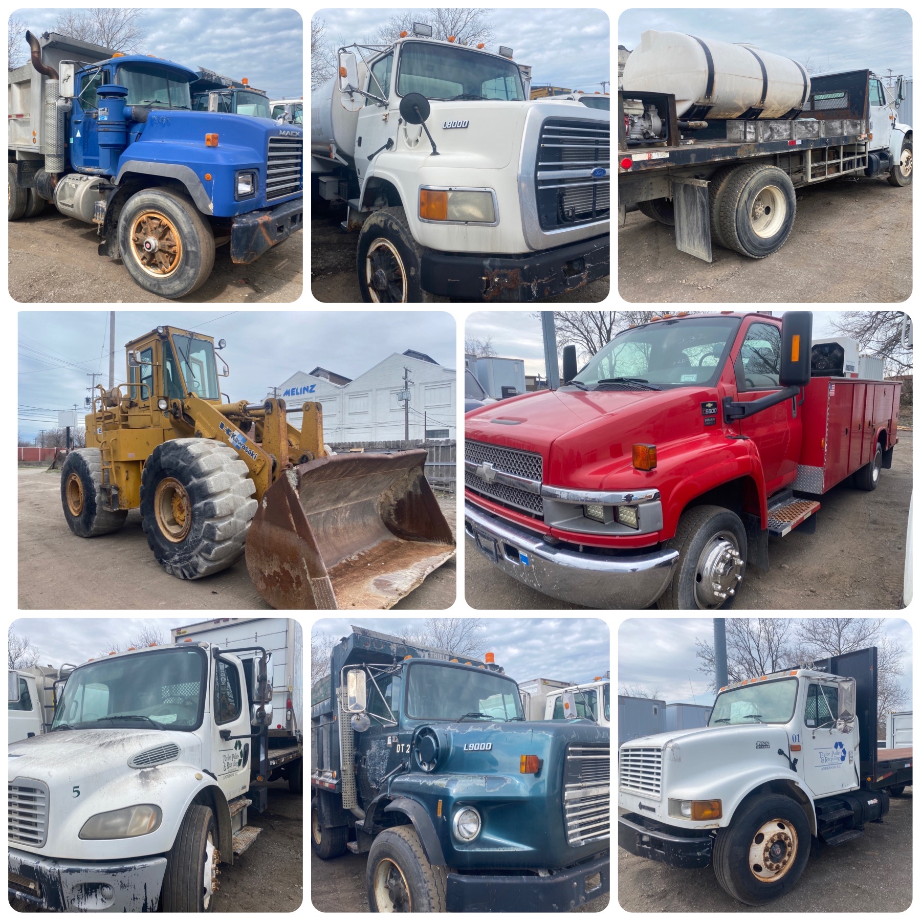 TRUCKS and TRAILERS: 2015 International TranStar 8600 Tandem Axle Tractor/Truck , 12 ft Tandem Axle Trailer , 1980 Ford Fire Truck , 1996 Ford LS8000 Fuel Truck , Shore Land'r Boat Trailer , 2007 Ford F-550 Truck , 2009 GMC Savanna 16ft Cutaway Van , 2010 Chevrolet Express 12ft Cutaway Van , 1997 East Manufacturing Dump Trailer , 2006 East Manufacturing Co Quad Axle Aluminum Dump Trailer , 2018 Forest River Dual-Axle 14 ft Dump Trailer , 2024 Quality Trailer Co, 16ft Dual Cylinder, Tandem Gooseneck Dump Trailer , 1995 Ford LTS9000 Tri-Axle Dump Truck , 1997 Mack RD600 Tri-Axle Dump Truck , 2005 Ford F-450 Pickup Truck , 2007 Ford F-450 Pickup Truck , 2023 Quality Trailer Co., 20ft Tandem Equipment Trailer , 1986 Ford F-700 Diesel Flatbed Truck , 2002 Ford F-250 4x4 Flat Bed Truck , Wolverine Co. 8ft Fork Extensions , 2006 Chevrolet Aveo LT , AMO Co 16ft Tandem Landscape Trailer w/ Ramp , Big Tex 8ft Landscape Trailer , Rogers Trailer Co “Croucher” 40ft Lowboy Hydraulic Equipment Trailer , Holland Co 20,000 lb Tandem Axle Rear End Assembly & Landing Gear , Rear Set of Plastic Truck Wheel Wells , 1995 Great Dane 48ft Reefer Trailer , LIKE NEW-Counts Container Co 30yd Rolloff Container , 1999 Peterbilt 320 Rolloff Truck , 1986 Ford 8000 Truck , 2012 Ford F-550 Diesel 4x4 Cab/Chassis-Read , 2005 Chevrolet 5500 Service Truck , 2007 Peterbilt 335 Truck , 2011 Ford F-750 Truck, 2001 International 4900 Stake Truck/Flatbed , 2007 Freightliner M2 Stake Truck/Flatbed , 30ft Tandem Axle Livestock Trailer , 1986 Mack DM685S, 22ft Tandem Cab & Chassis , 1988 Mack Model 600 Tandem Axle Tractor / Truck , 1996 Peterbilt 379 Truck, 1998 Freightliner FL70 Single Axle Auto Tractor / Truck , 1999 Mack CH613 Tractor / Truck , 2008 Sterling A9500 Tandem Axle Tractor / Truck , 2008 Sterling A9500 Tandem Tractor / Truck , 2015 International TranStar 8600 Single Axle Tractor / Truck , 2000 Utility Co 48ft Enclosed Van Trailer , 2005 Trailmobile 48 ft Enclosed Van Trailer , 2013 Wells Cargo SW8 Trailer , 1991 Chevy C3500 Gas Dually Utility Truck , 2006 GMC Savana Van with Shift Crane , 1992 International 4700 Water Truck/Flatbed , 1991 International 4600 Truck, 1999 GMC 2500 Sierra Plow Truck, 1990 Ford Street sweeper, 2003 Sterling L7500 Vac Truck