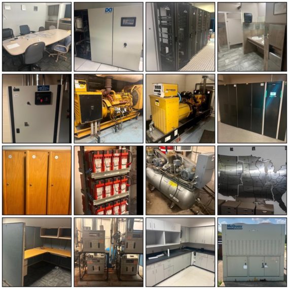 TWO DIESEL GENERATORS, Multiple Commercial Battery Backup Units, Compressor, HVAC Components, Computer Racking, Office Furniture, and SO MUCH MORE!